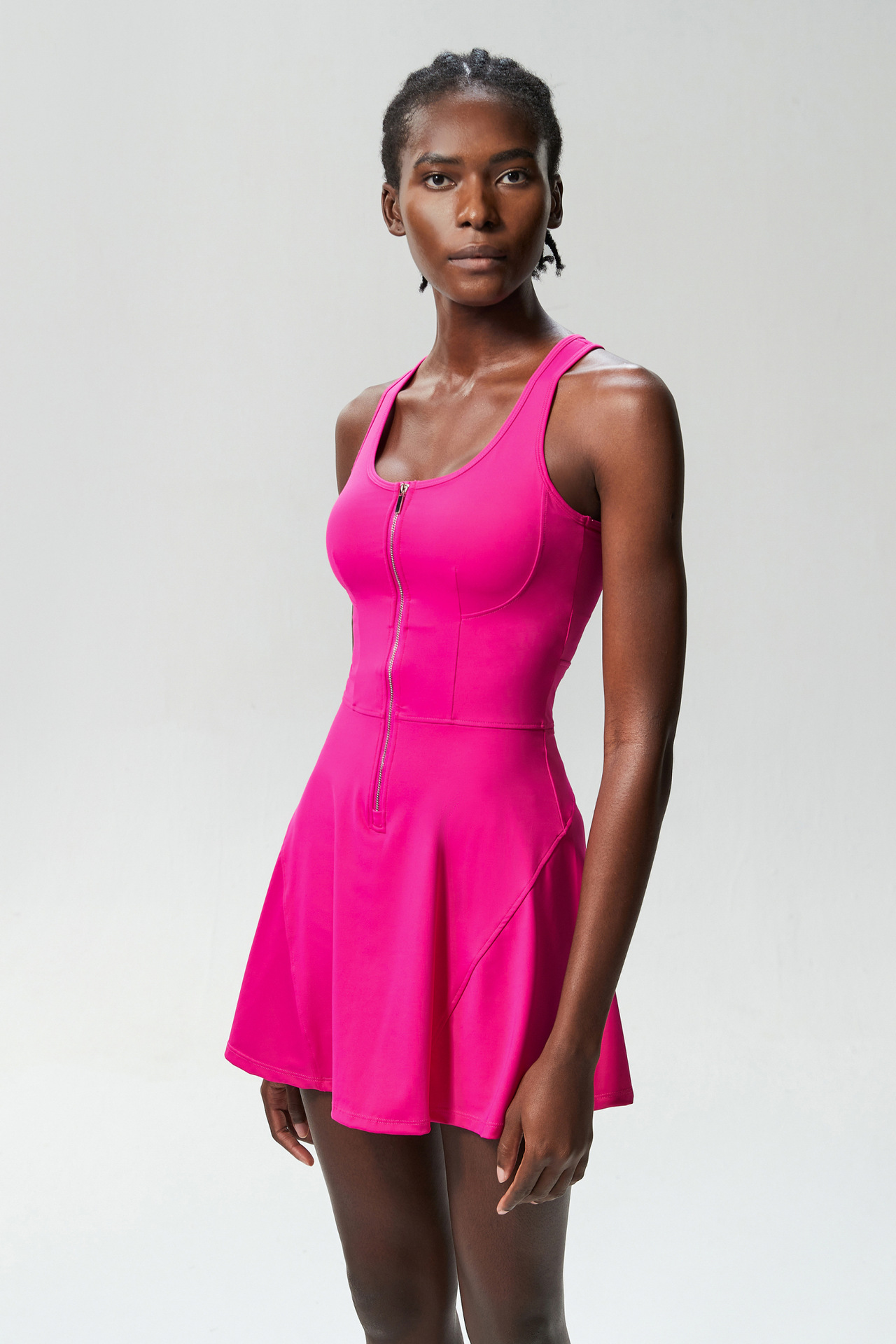 The Serena Tennis Dress is your ultimate companion for active days, expertly crafted from quick-drying nylon to keep you comfortable whether you're playing badminton, hitting the gym, or enjoying a leisurely day outdoors. With a regular fit and a stylish zipper detail, this solid-colored dress effortlessly combines functionality and elegance. Its short length allows for easy movement, making it ideal for sports activities while also being versatile enough for casual outings.