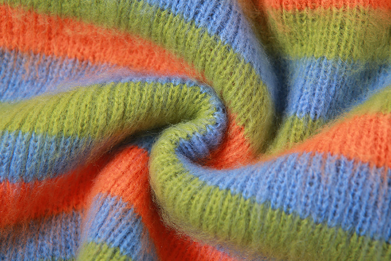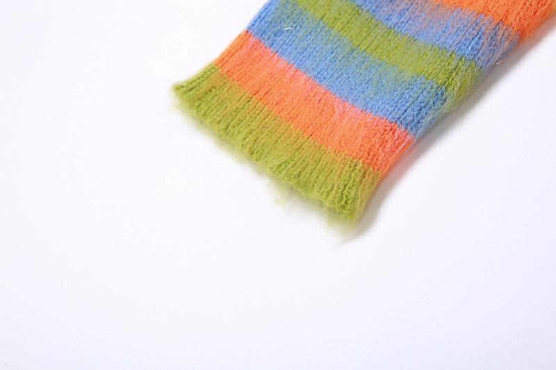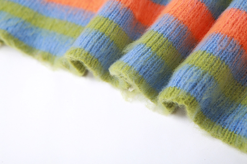 Prepare to turn heads and stay cozy in style with Emma's Knitted Cropped Sweater. This sweater brings together the timeless charm of stripes and the trendy allure of color-blocking to create a fashion-forward masterpiece. The cropped design is perfect for those chilly autumn and winter days when you want to stay warm without sacrificing your sense of style. With a chic zipper collar and long sleeves, this sweater strikes the ideal balance between comfort and sophistication.