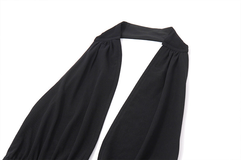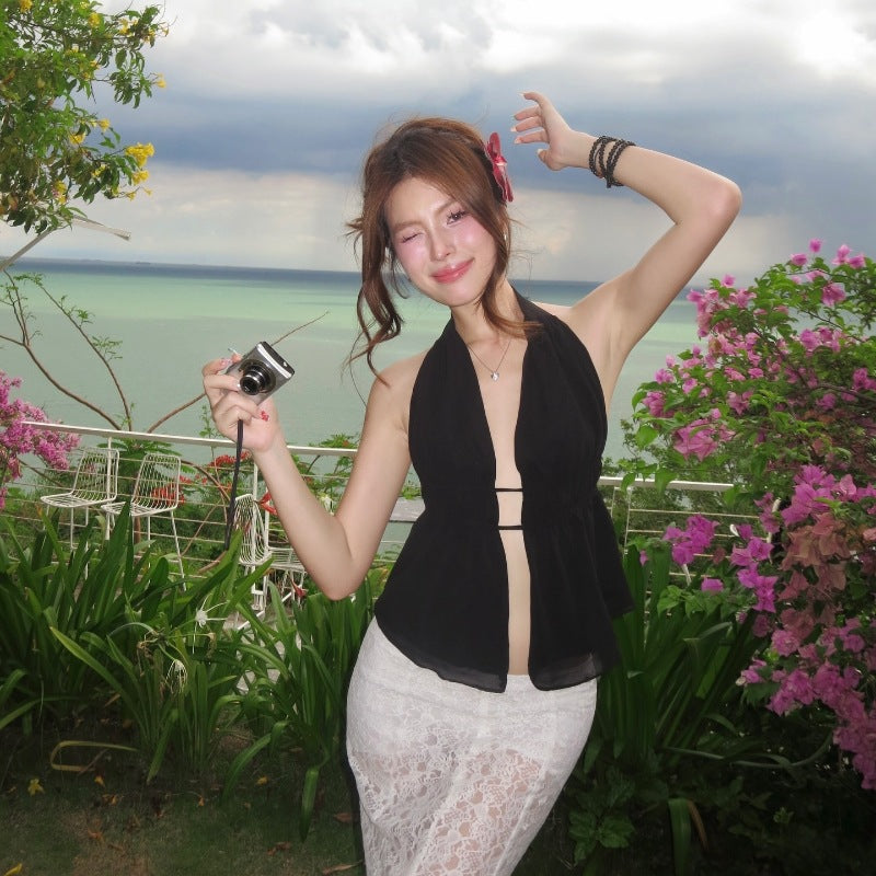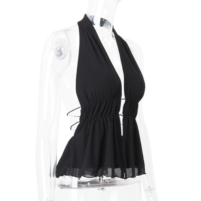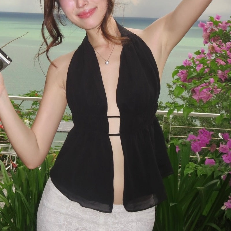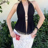 Whether you're dressing it up for a night out, pairing it with high-waisted jeans, or layering it with a chic jacket, the **Samantha Halter** effortlessly transitions from summer fun to year-round style. Available in classic black for a timeless, daring look.